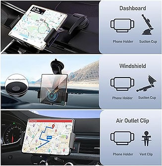 - デュアルインストール:ダッシュボードや通気口、さらには窓にも電話ホルダーを取り付けることができます。 吸盤で取り付けることで、車のダッシュボードや窓を傷つけません。 吸引して取り付けた場合は、12時間待ってから使用してください。
