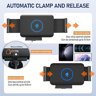 - インテリジェント自動誘導クランプ:本体のボタンを押すと、電話ホルダーがクランプを解除し、電話を置いた後、電話ホルダーが自動的にクランプして充電を開始します。 ボタンを押すと、クリップが自動的に電話を解放し、携帯電話を手に入れることができます。超幅広のクリップは、Samsung Galaxy Z Fold7 / Fold6 / Fold5 / Fold4 / Fold3をしっかりと固定できます。