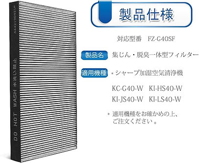 - 【集塵・脱臭一体型フィルター(FZ-G40SF)対応機種】加湿空気清浄機のKC-G40-W、 KI-HS40-W、 KI-JS40-W、 KI-LS40-W ※対応機種をお確かめの上、ご注文ください 。
